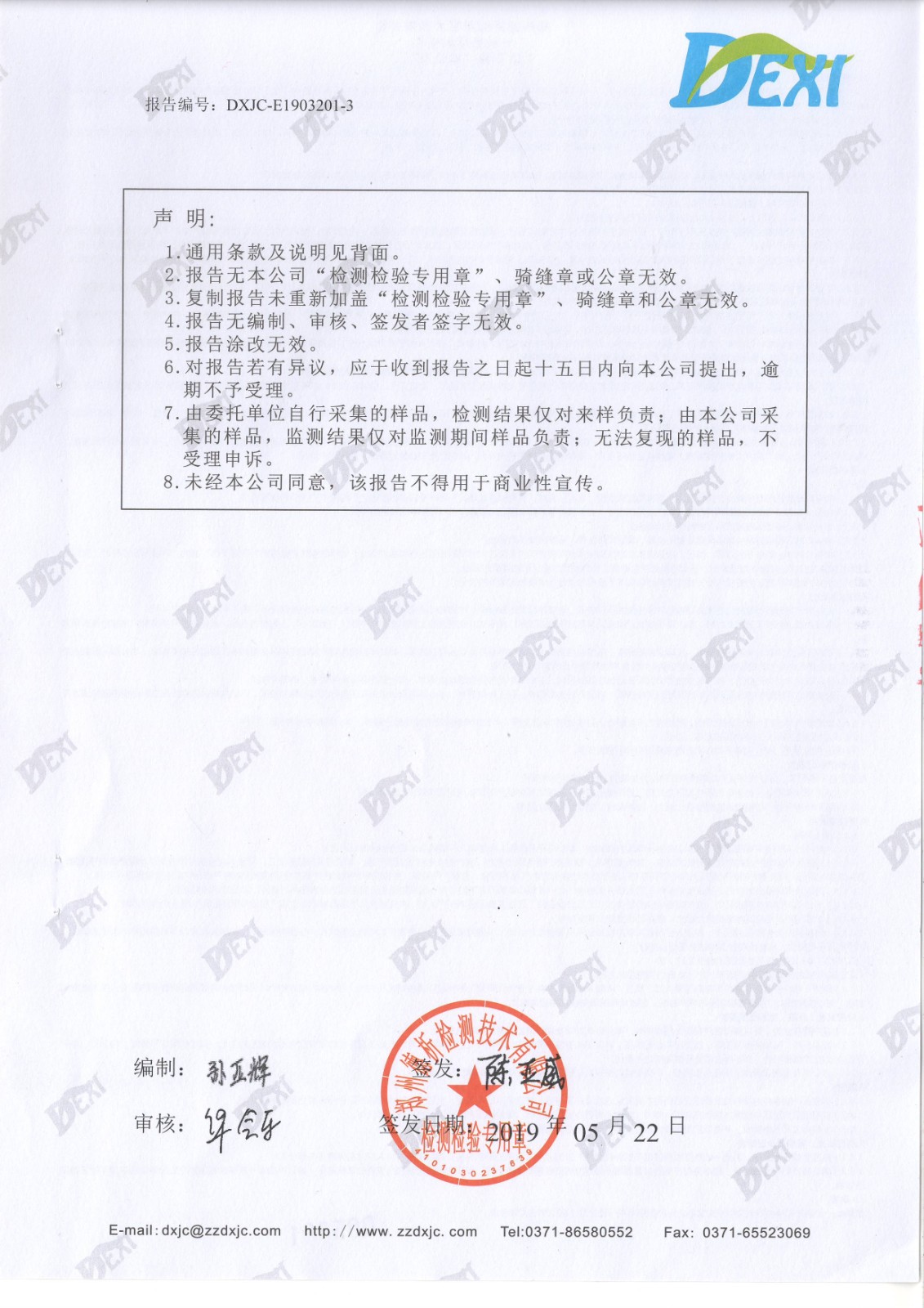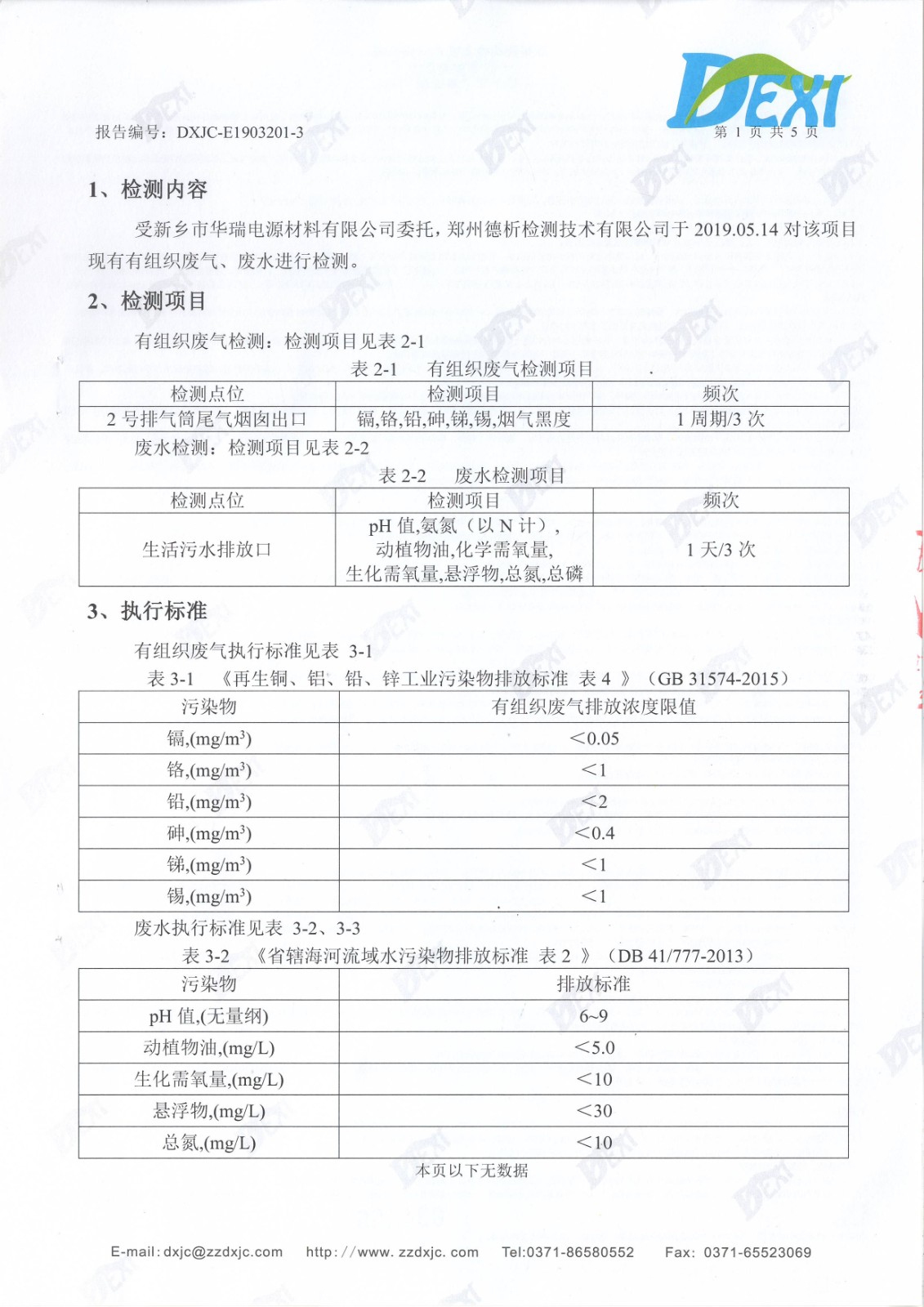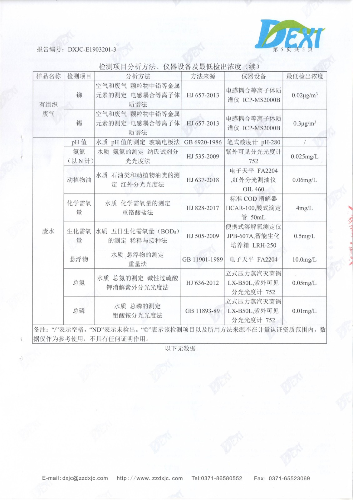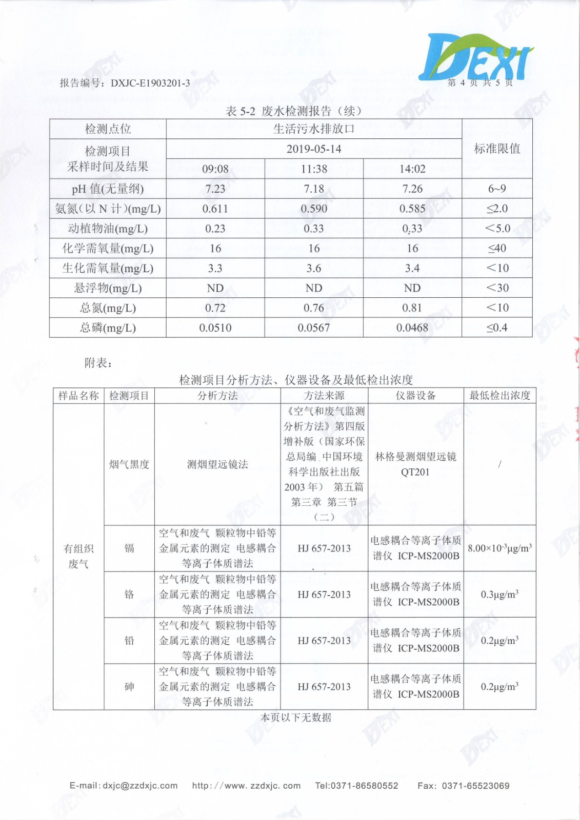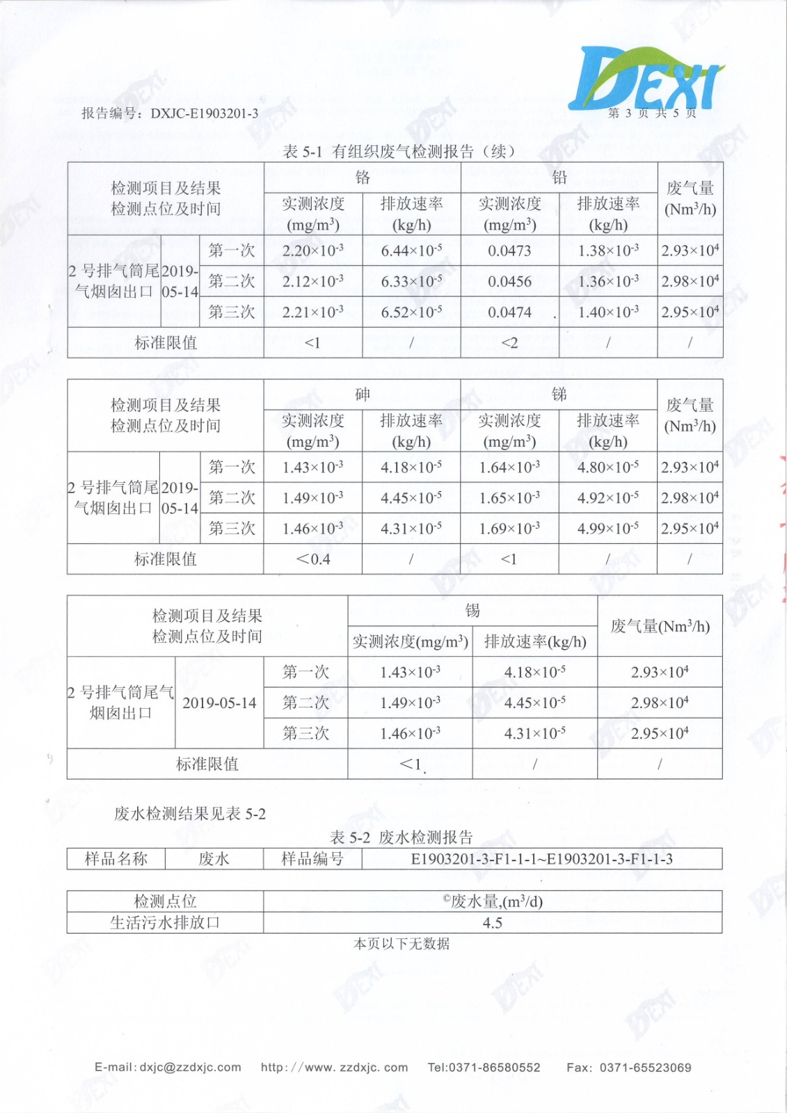 2019年5月份廢水廢氣檢測報(bào)告