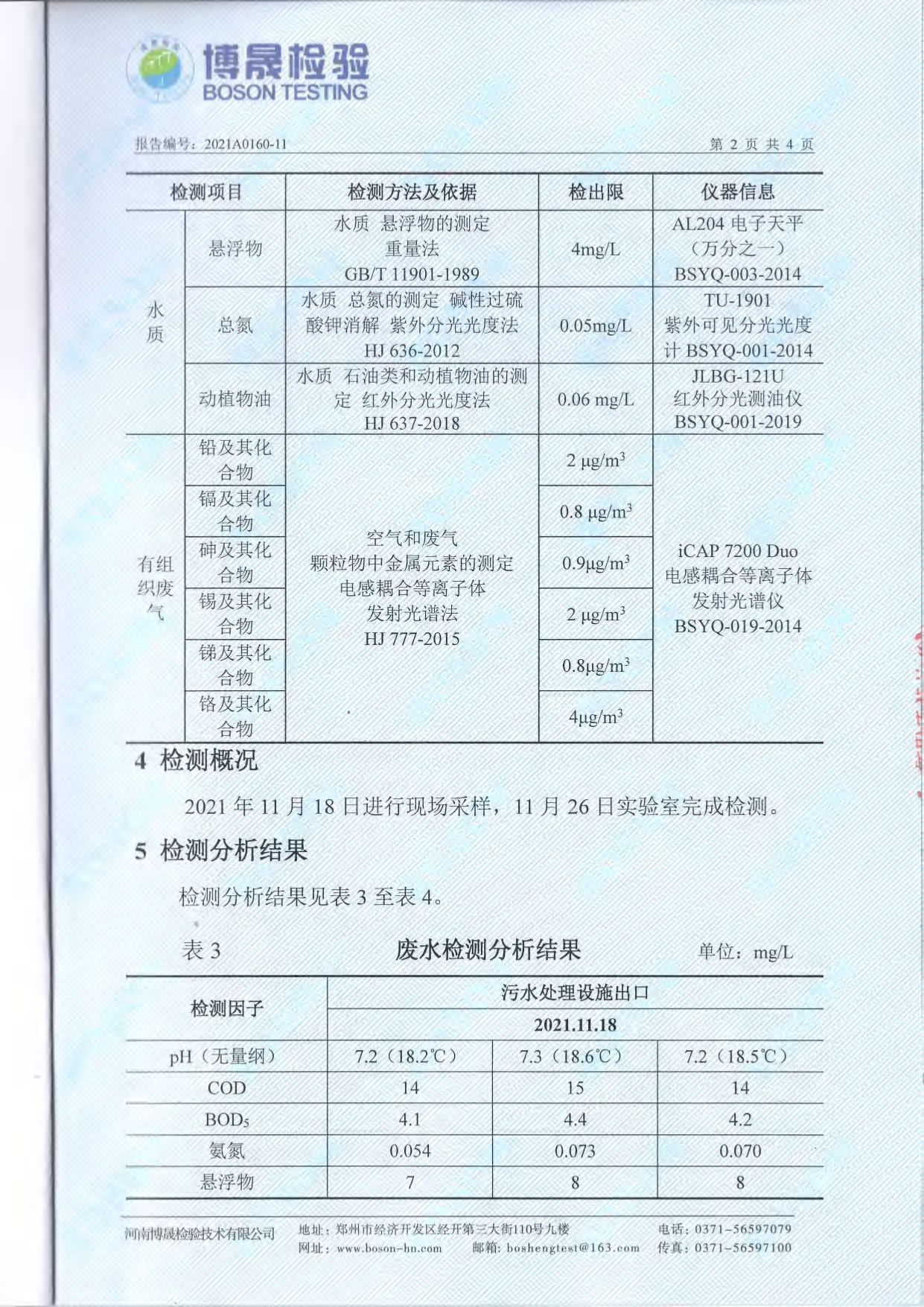 2021年11月份廢氣廢水檢測報告